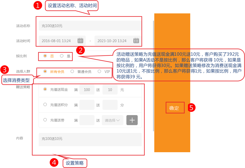 2.設(shè)置活動(dòng)名稱(chēng)、時(shí)間、贈(zèng)送策略。