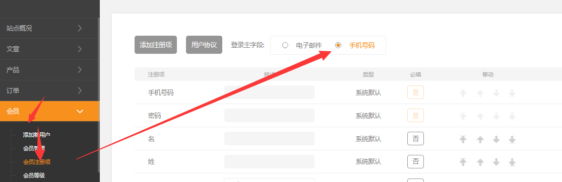 要使用短信找回、會員主字段需要設(shè)置為 手機