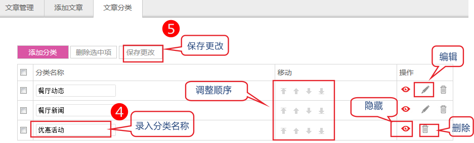 “刪除”:刪除該分類。