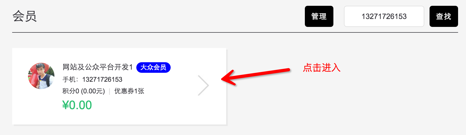 (1)通過手機號查找會員