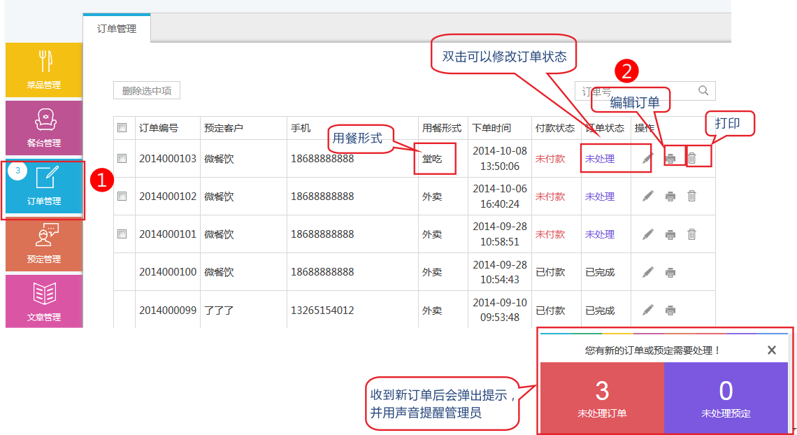 接下來,我們從一個外賣訂單的生成到完成來說明"堂吃訂單"的處理流程