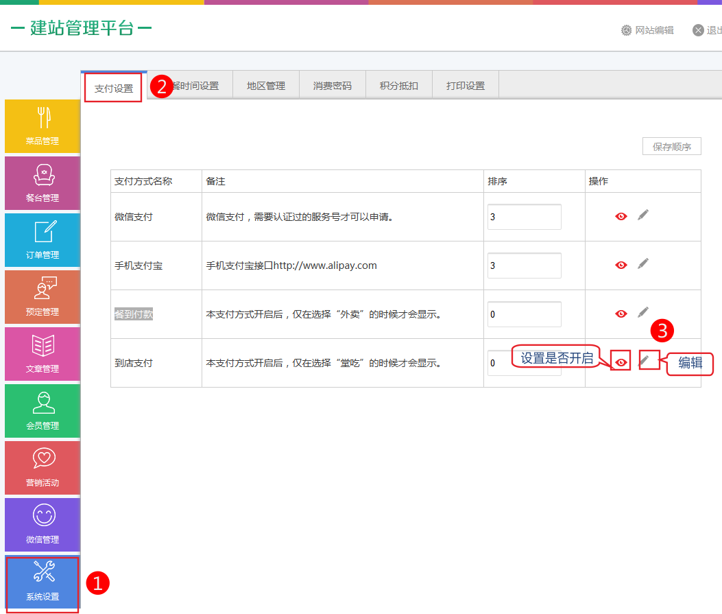 依次點擊系統(tǒng)設(shè)置-》支付設(shè)置-》編輯到店支付接口