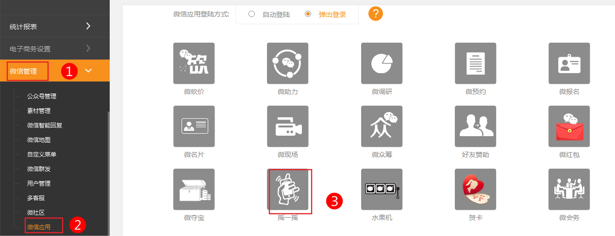 1、依次點擊微信管理-微信應(yīng)用-搖一搖
