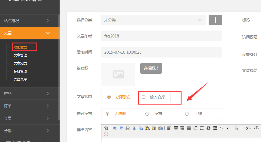 一、可能是您添加產(chǎn)品或文章時(shí)選擇了放入倉(cāng)庫(kù)二、您用的是非管理員帳號(hào),此帳號(hào)在角色管理中沒(méi)有給予"文章審核"權(quán)限。讓超管帳號(hào)登陸配置權(quán)限后,退出重新登陸再添加即可