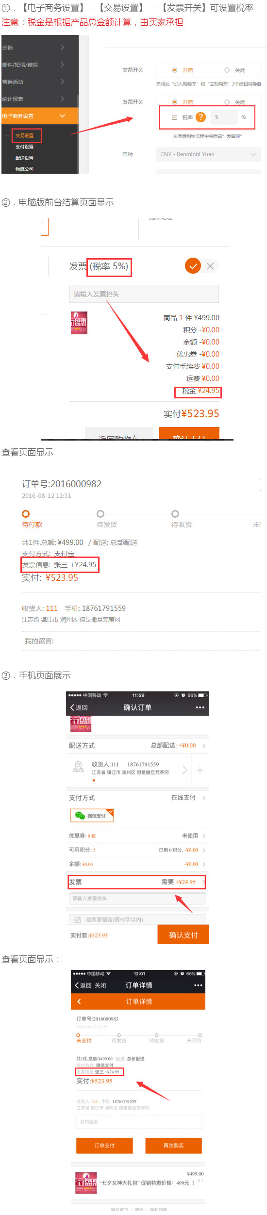 適用版本營(yíng)銷(xiāo)版pc+手機(jī)+小程序 一、稅率開(kāi)啟,和前臺(tái)表現(xiàn)形式 二、增值稅表現(xiàn)形式