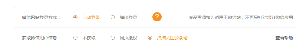 微信應(yīng)用-獲取微信用戶信息具體說明 僅適用于自動登錄的情況 獲取微信用戶信息: 1、不獲取:系統(tǒng)自動生成賬號,但是不獲取微信頭像和昵稱 2、網(wǎng)頁授權(quán):用戶在進入網(wǎng)站時會出現(xiàn)如下網(wǎng)頁授權(quán)的頁面,用戶同意之后,這樣創(chuàng)建的賬號會獲取微信頭像和昵稱 3、關(guān)注公眾號:用戶進入關(guān)注公眾號的界面,關(guān)注之后,再次進入網(wǎng)站自動創(chuàng)建的賬號會獲取微信頭像和昵稱