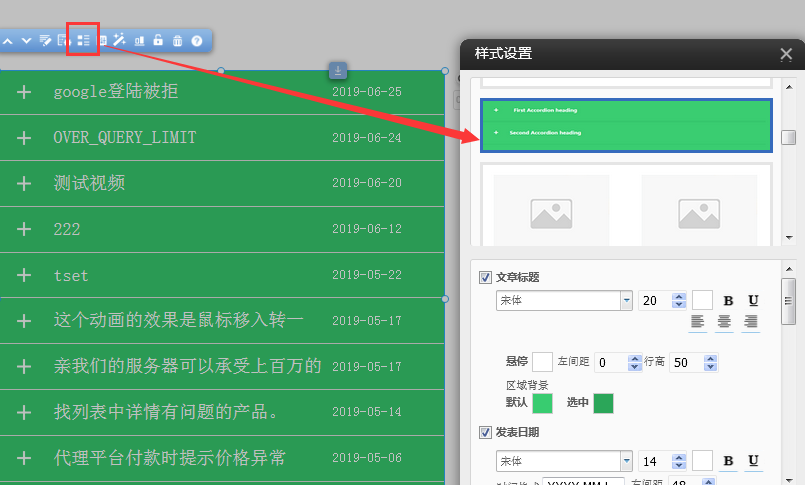 文章列表點(diǎn)擊展開(kāi)樣式選中插件點(diǎn)擊樣式設(shè)置按下圖選擇即可點(diǎn)擊標(biāo)會(huì)展開(kāi)顯示簡(jiǎn)介信息效果如下圖