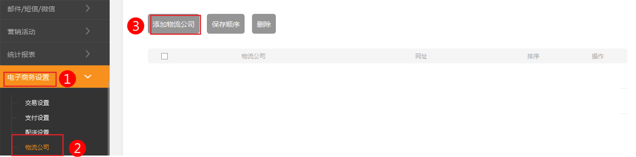 物流公司會出現(xiàn)在配送方式及訂單信息中,供會員查詢物流狀態(tài),需要預先設置。 依次在后臺點擊電子商務設置-》物流公司-》物流公司添加
