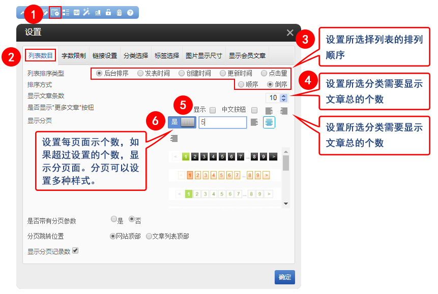 注意:文章列表自適應(yīng)邏輯規(guī)則,有分頁的列表有自適應(yīng),沒有分頁的列表沒有自適應(yīng)文章列表設(shè)置詳細介紹1、列表數(shù)目對應(yīng)的在顯示時的位置。2、字數(shù)限制對應(yīng)的在顯示時的位置。3、鏈接設(shè)置在樣式設(shè)置-》列表數(shù)目可以設(shè)置列表排序類型注意:默認排序為后臺排序-》排序方式為倒序即:數(shù)值大的顯示在前面。產(chǎn)品和文章的排序類似,此處用產(chǎn)品列表模塊演示在后臺產(chǎn)品管理-》修改產(chǎn)品順序值-》注意修改完成后需要點擊“保存順序”(系統(tǒng)默認排序為:數(shù)值大的顯示在最前面)產(chǎn)品列表插件樣式設(shè)置中可以設(shè)置標題、分類、瀏覽次數(shù)、發(fā)表時間、摘要、分
