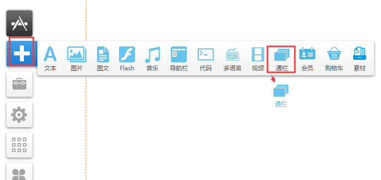 添加通欄模塊并添加內(nèi)容通欄是一個橫貫左右兩邊的欄目,很多時候,通欄都會用于突顯一些視覺效果并形成與頁面背景或者站點背景形成鮮明的對比,以求達到網(wǎng)站吸引眼球的效果。常用的位置:網(wǎng)頁頂部、中上部位、底部1.進入編輯頁面點擊左側(cè)的添加按鈕,然后會看到通欄模塊:2.用鼠標把這個模塊拖動到頁面上然后會看到灰色部分就是通欄了,新添加的通欄是沒有內(nèi)容的,您可以直接在里面新增模塊,或者將原有的模塊拖入這個通欄中成為通欄中的元素并且可以一起拖動:3.上圖的通欄是還沒有添加任何模塊的,用戶可以自行將一些文字,或者圖片模塊