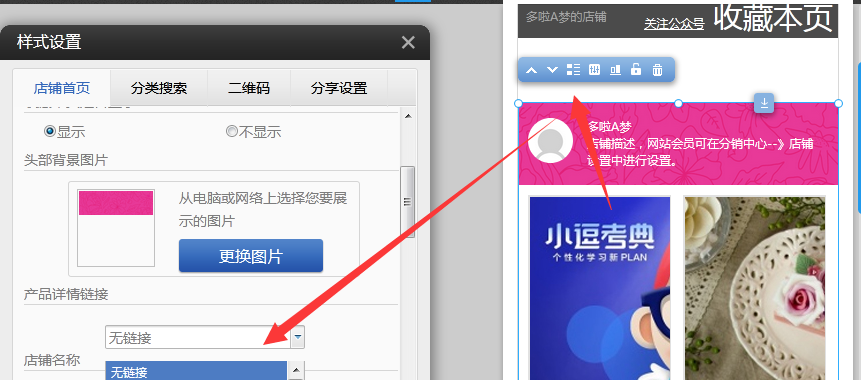 先進(jìn)入網(wǎng)站后臺點擊站點編輯在編輯界面點擊小程序圖標(biāo)進(jìn)入小程序編輯界面然后選中產(chǎn)品列表模塊點擊右側(cè)屬性設(shè)置然后點擊鏈接至下拉選擇帶有產(chǎn)品詳情插件的頁面然后保存